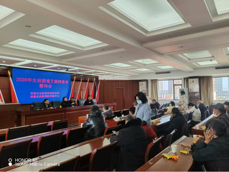 寒冬送暖,守护安康。为深入落实 “四免一关怀” 政策,切实保障贫困艾滋病患者的基本生活与身心健康,1月23日下午,常德市皮肤病性病防治所、桃源县疾病预防控制中心联合开展艾滋病贫困患者专项慰问活动,为辖区内多名生活困难的艾滋病患者送去冬日关怀与社会温暖。