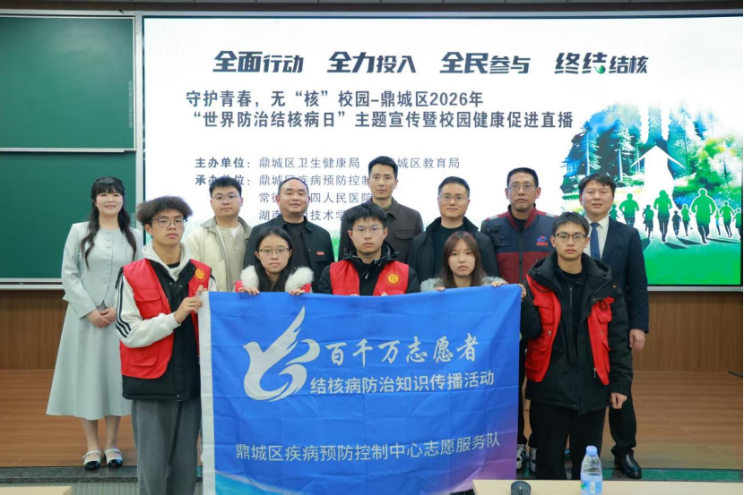 3月23日晚,在第31个世界防治结核病日来临之际,由区卫健局、区教育局主办,区疾病预防控制中心联合常德市第四人民医院、湖南应用技术学院共同承办的“守护青春,无‘核’校园”主题宣传直播活动顺利举办并圆满落幕。本次活动紧扣“全面行动 全力投入 全民参与 终结结核”国家主题,通过“鼎级传媒”平台全程线上同步直播,以专业科普、权威解读、互动答疑的形式,面向校园师生、家长及社会大众普及结核病防控知识,累计现场参与人员140余人,线上观看人数突破7.9万人次,大幅超出5万人次的预期传播目标,实现了结核病防控知识的广泛普及与高效传播。